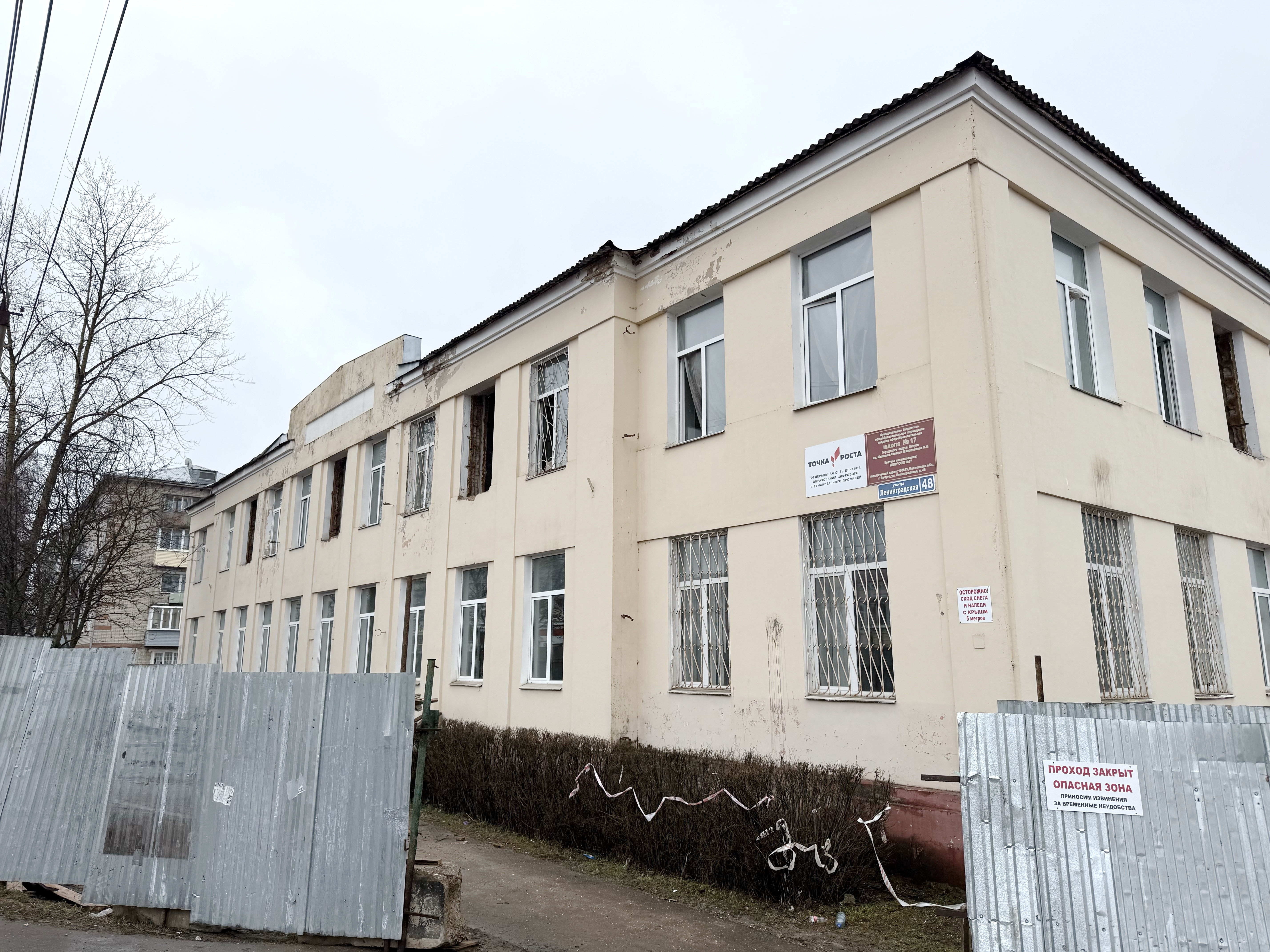 Особое внимание во время рабочего визита уделяли соблюдению подрядчиками сроков. Одним из ключевых объектов стала вичугская школа №17, столетнее здание которой десятилетиями не знало полноценного ремонта. Здесь обучаются более 450 детей. Сейчас подрядная организация развернула площадку и начала демонтаж.